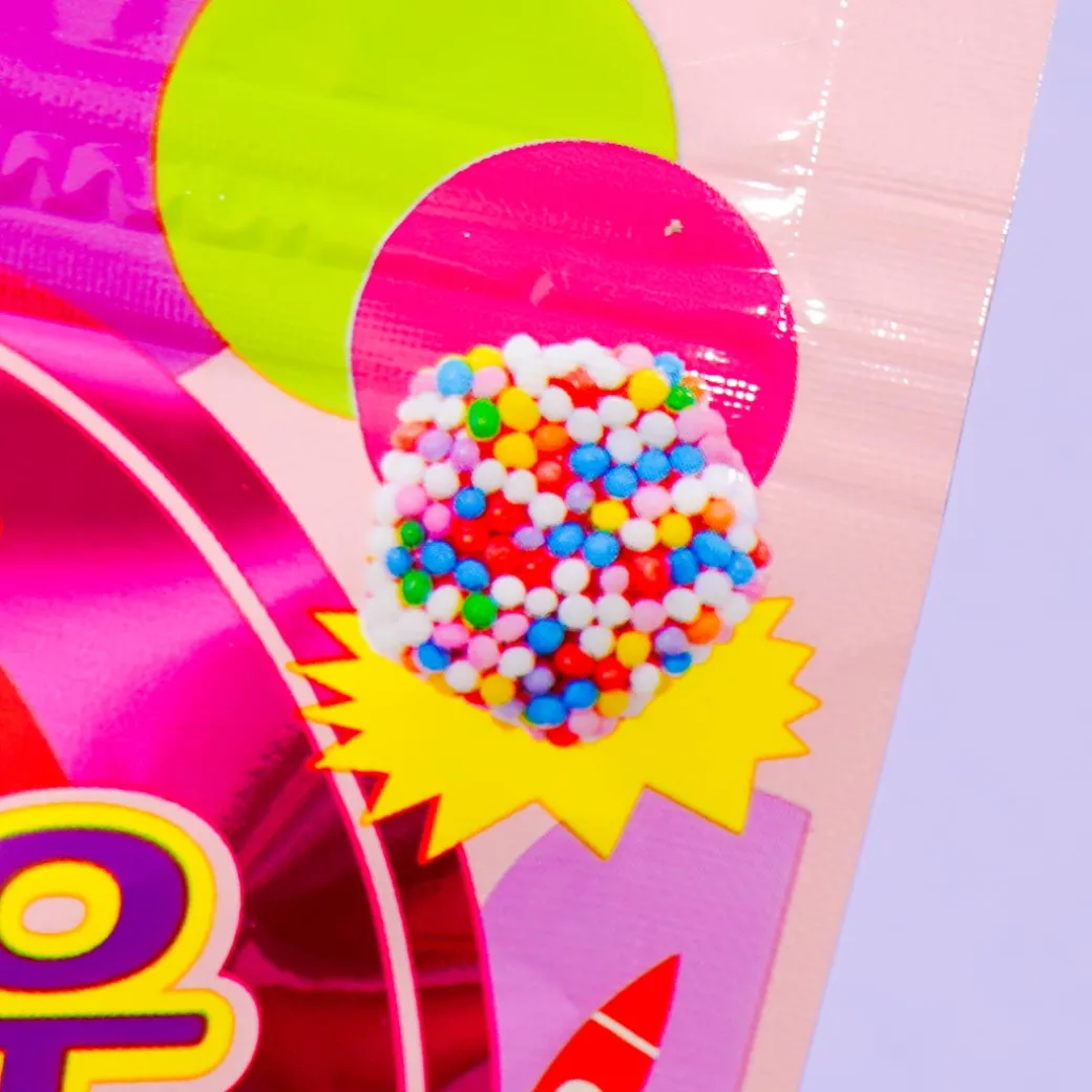 Try these popular grape gummies that are generously coated with rainbow dots candy sprinkles! These are the perfect textured treats to eat when you’re shooting a candy ASMR video! You can also take them wherever you go as they come in a convenient pouch.