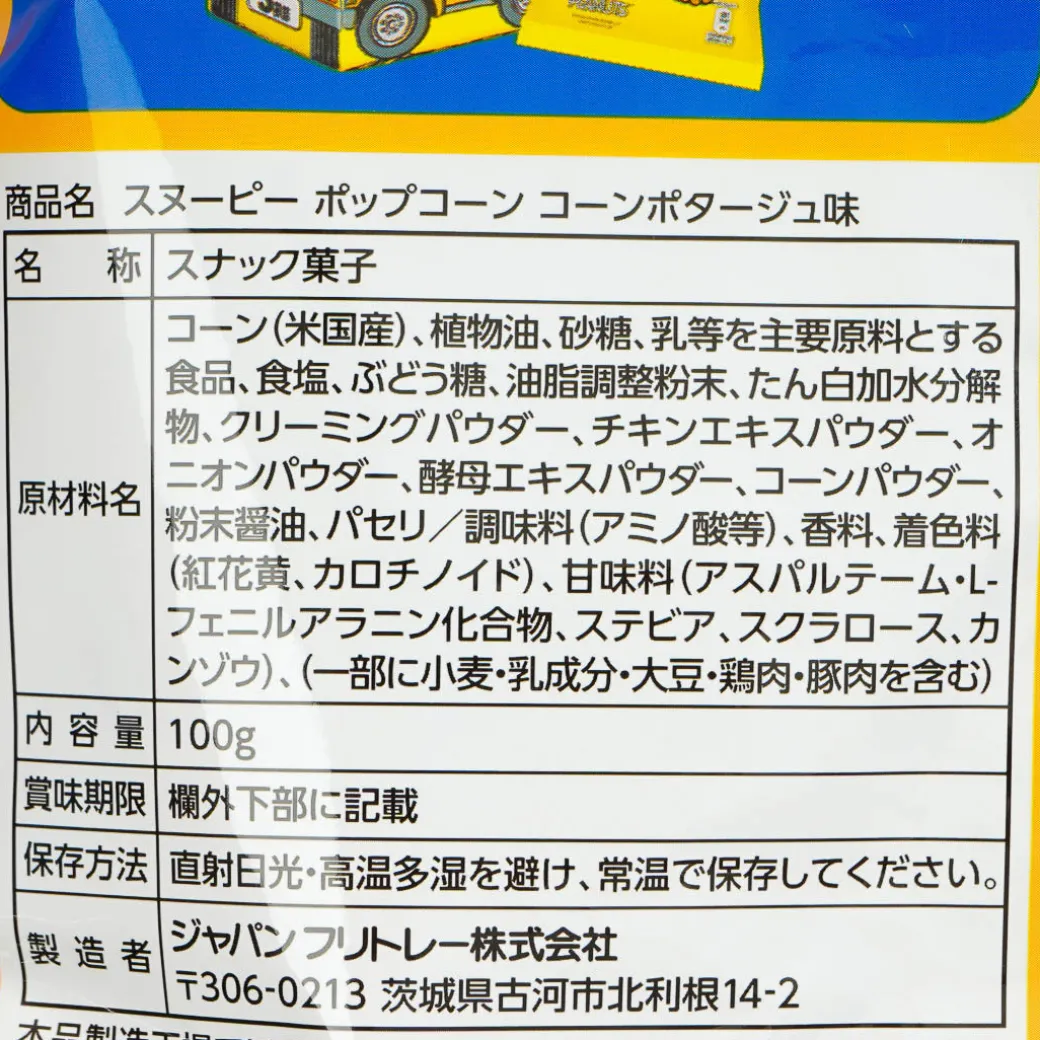 Munch on this pack of yummy popcorn while watching horror movies with your friends! It features Halloween-themed prints of Snoopy and his friends. Enjoy the taste of corn potage when you bite on each piece of popcorn! The packaging also has a “sugoroku” game that you can play with your buddies.