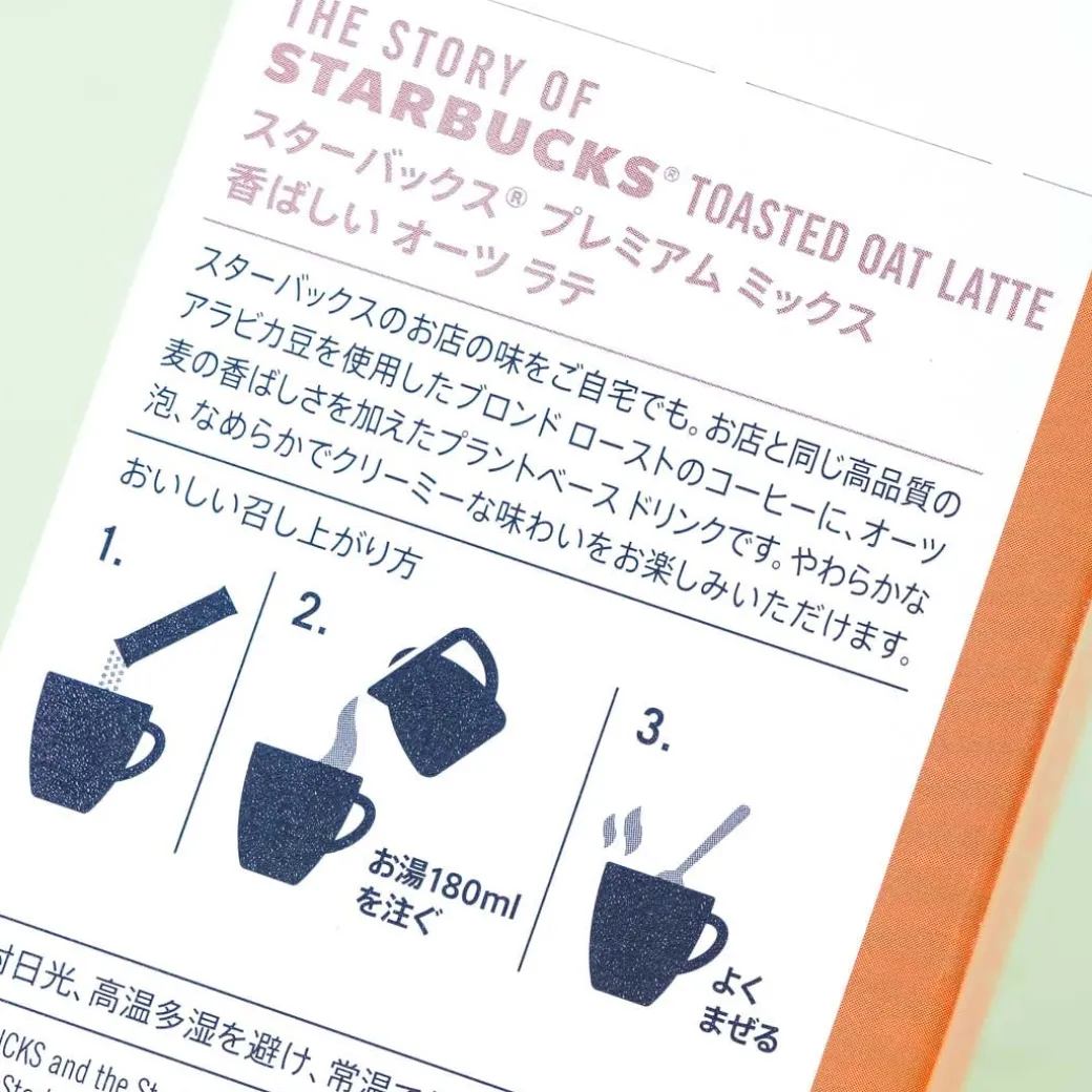 - A box of plant-based Starbucks premium mix series coffee in toasted oat latte flavor