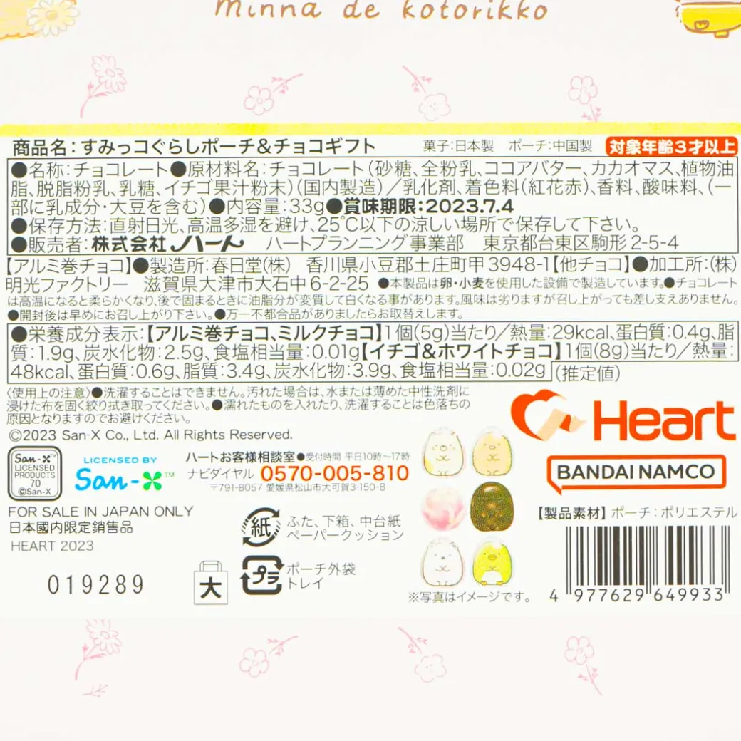 Gift your special someone with this Sumikko Gurashi character pouch that has yummy mini chocolates inside! The set also comes with a matching printed gift bag.