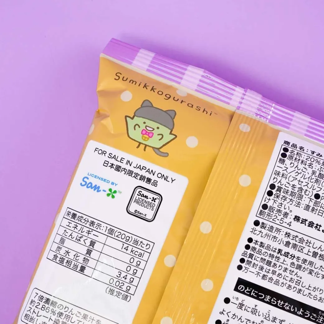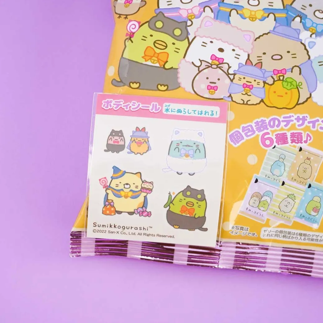 - A bag of apple-flavored jelly candies featuring the Sumikko Gurashi gang in Halloween costume