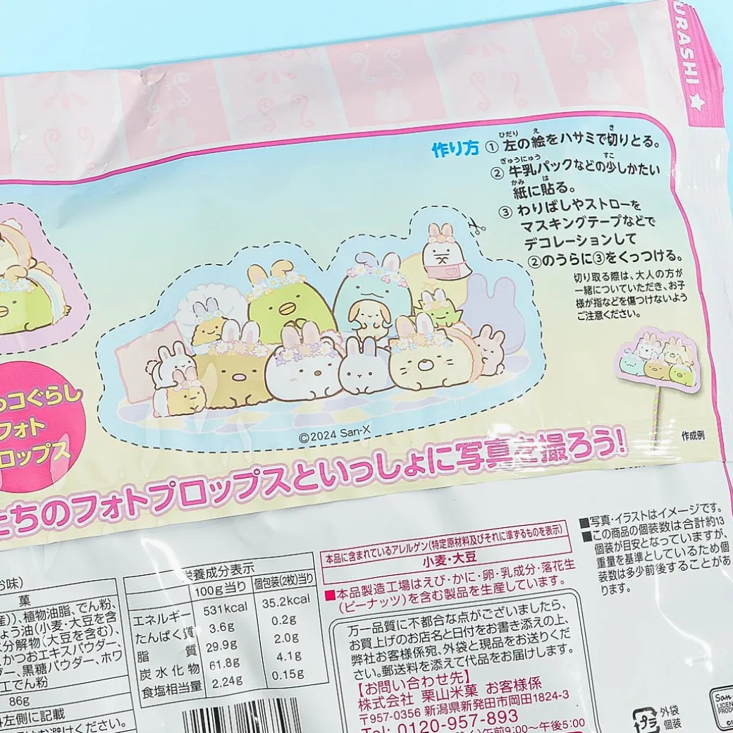 This pack of tasty star-shaped rice crackers showcases prints of the Sumikko Gurashi! It was made in celebration of the Japanese celebration Girls’ Day or hinamatsuri. Eat these lightly salted rice crackers with tea! You’ll get a random packaging design from a set of 24 types when you order.