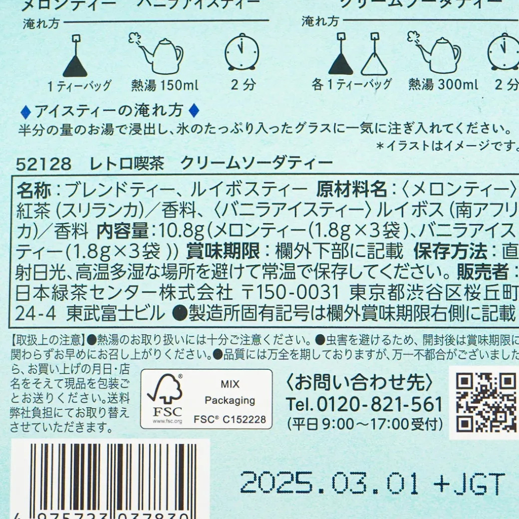 Unwind while you sip a warm cup of tea that’s inspired by cream soda, a traditional cafe drink. This pack of tea has two flavors — melon tea and vanilla iced tea. You can drink them separately or brew them together!