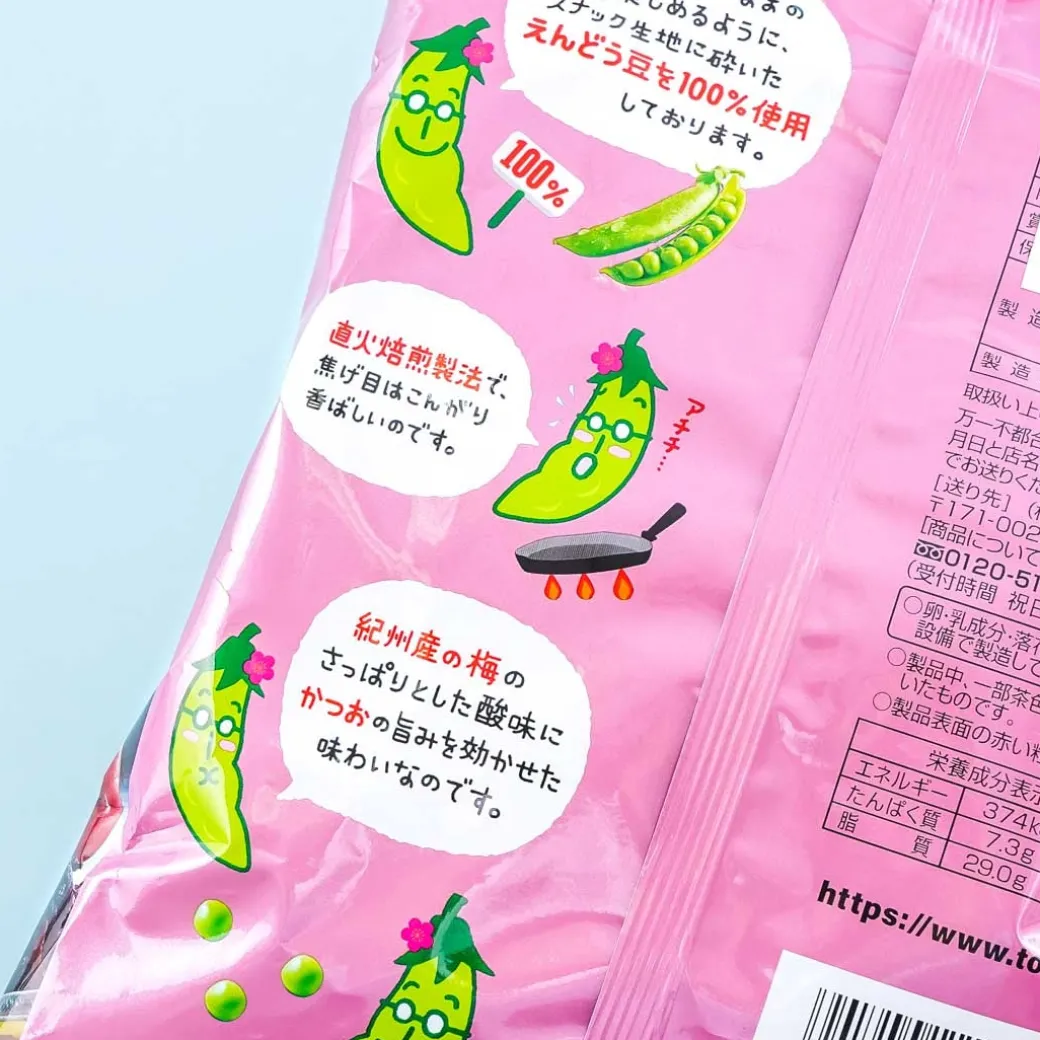 - A limited-edition pack of Kishu plum-flavored edamame pea snacks