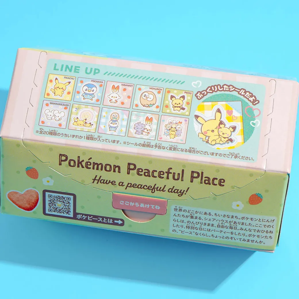 Enjoy a sweet and crunchy heart-shaped corn snack! This treat has a delicious strawberry flavor and comes in a hexagonal box featuring the Pokepeace version of Pocket Monsters. It even includes a Pokemon sticker!