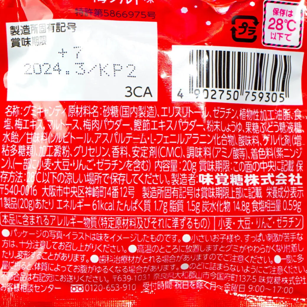 This pack of super sour gummy candies is the perfect break-time treat! Each cone-shaped gummy features the sour taste of ume plum enhanced by salt coating.