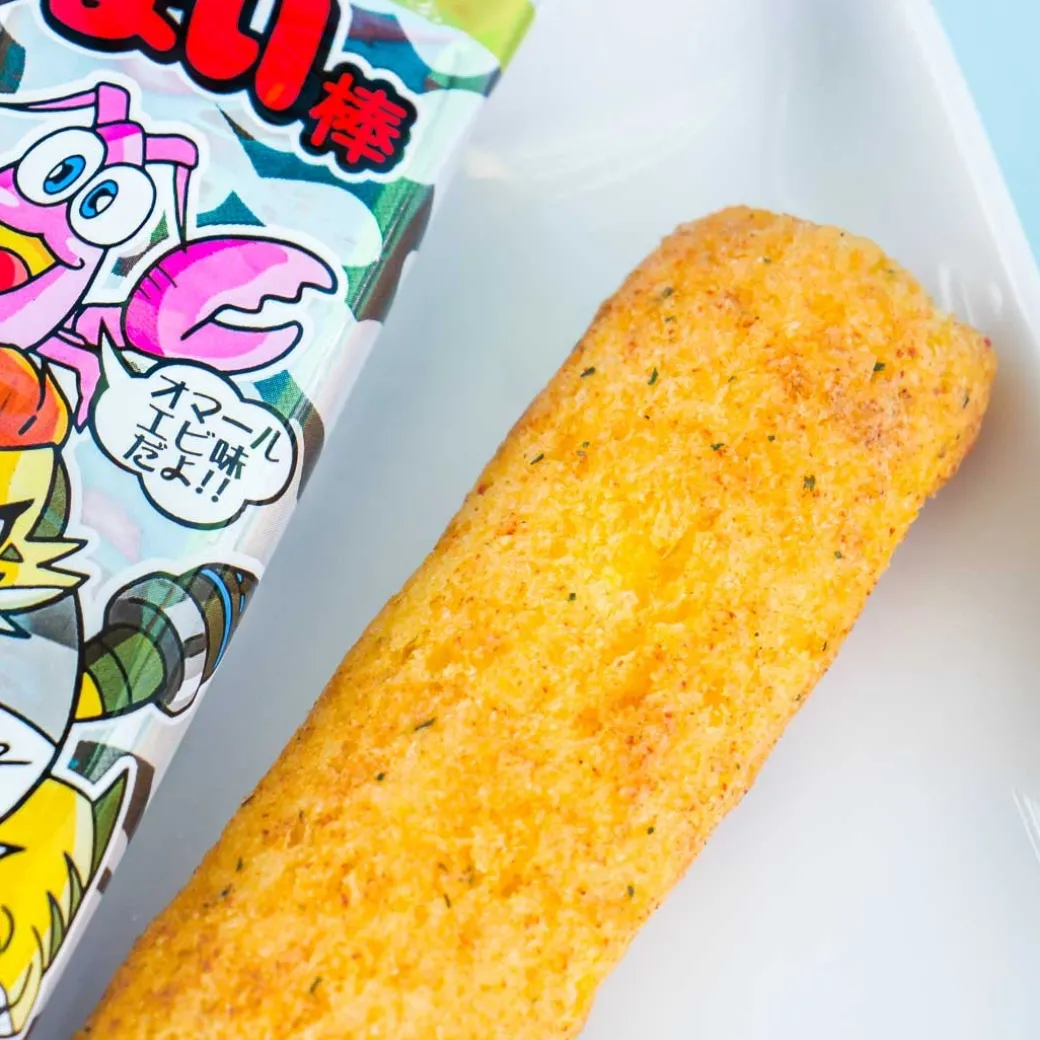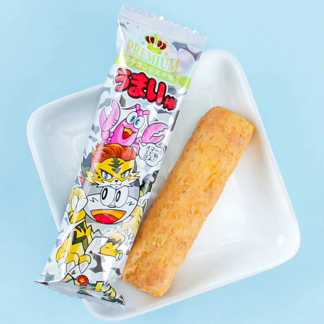 - A set of puffed stick-shaped corn snacks with dragon bisque flavor