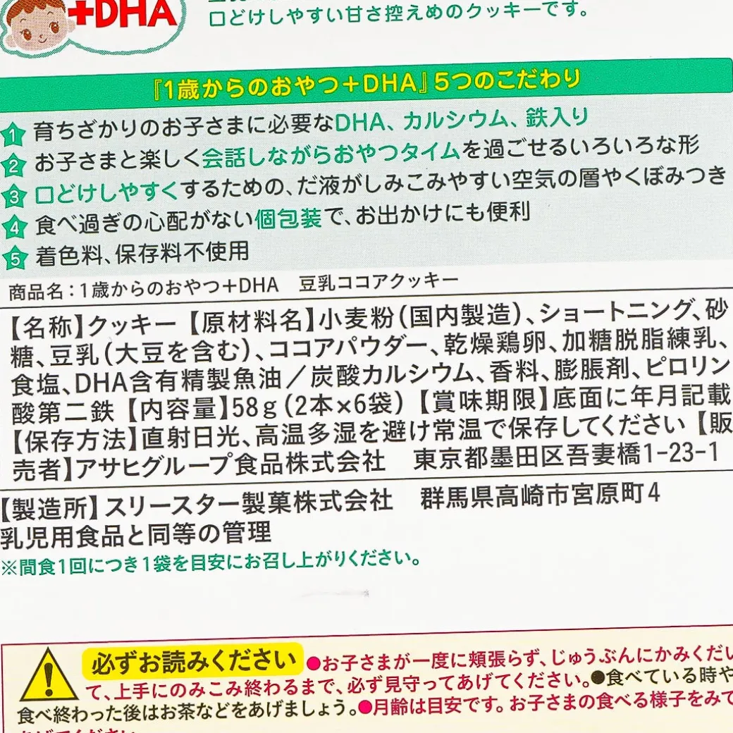 - A box of mild cookies made with soy milk and cocoa meant for children