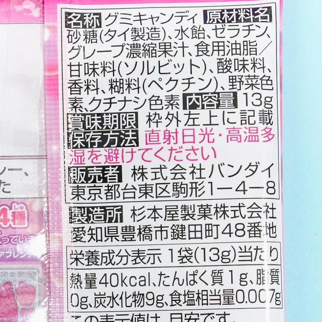 Enjoy these 3D-shaped gummies as you catch up on the latest episode of “Wonderful Pretty Cure!” The squishy candies are shaped like the heroines of this mahou shoujo or magical girl anime series and come in a convenient pull-out tray. You can savor the taste of fresh grape juice as you bite into these yummy gummies!
