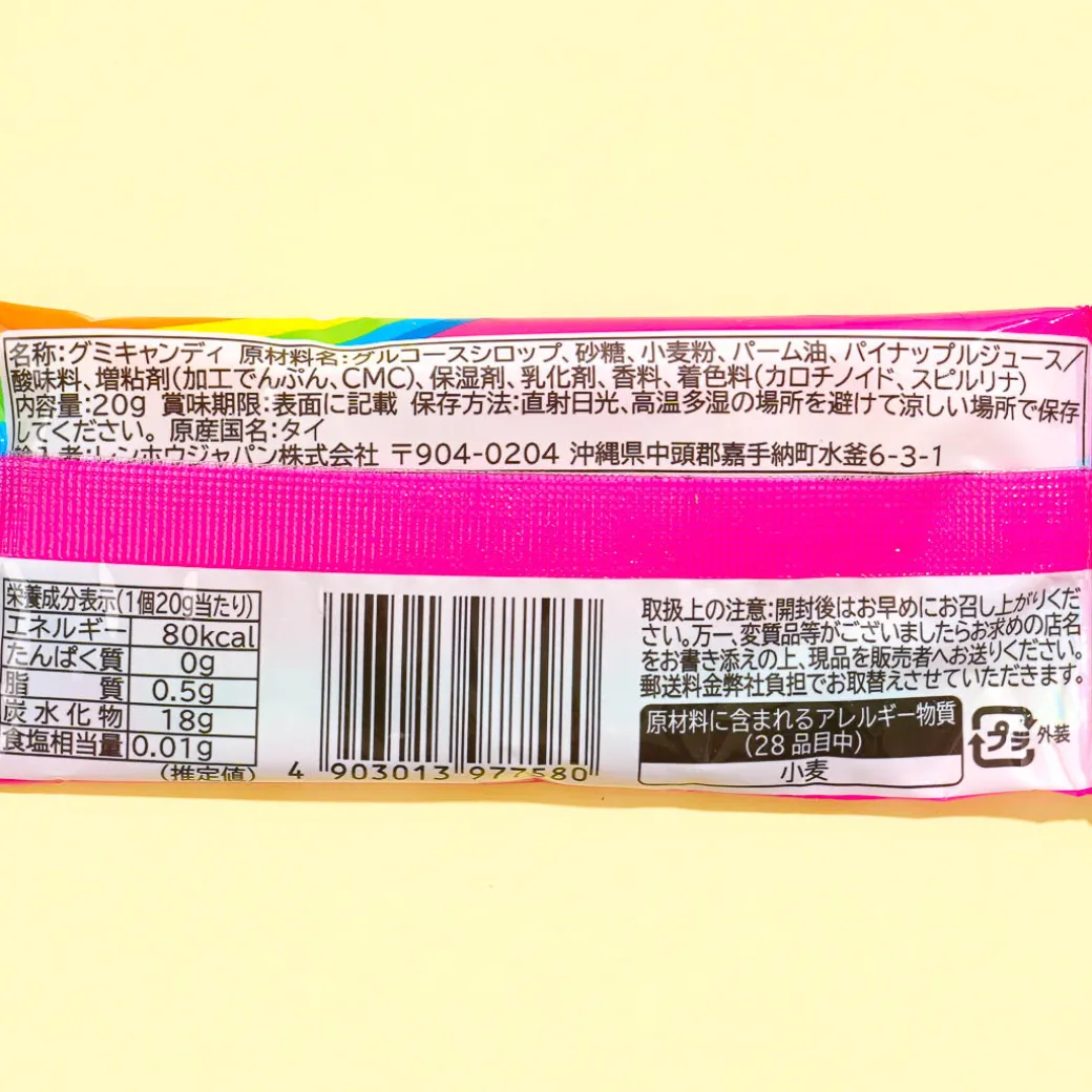 Enjoy nibbling on these belt-shaped gummy candies. These strawberry-flavored gummies are colorful and yummy!