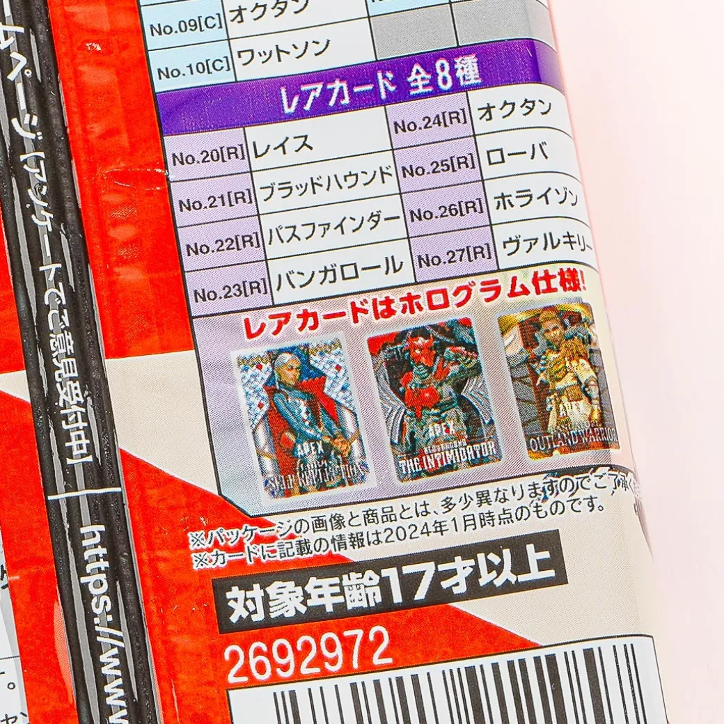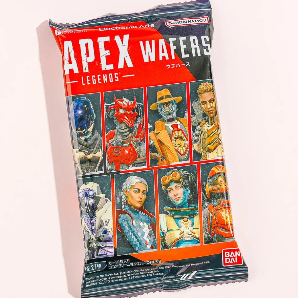 Enjoy munching on this delicious cocoa-flavored wafer! It comes with a collectible card showcasing the heroes from the popular video game, “Apex Legends.” You’ll get a randomly selected packaging featuring cool illustrations from the game!