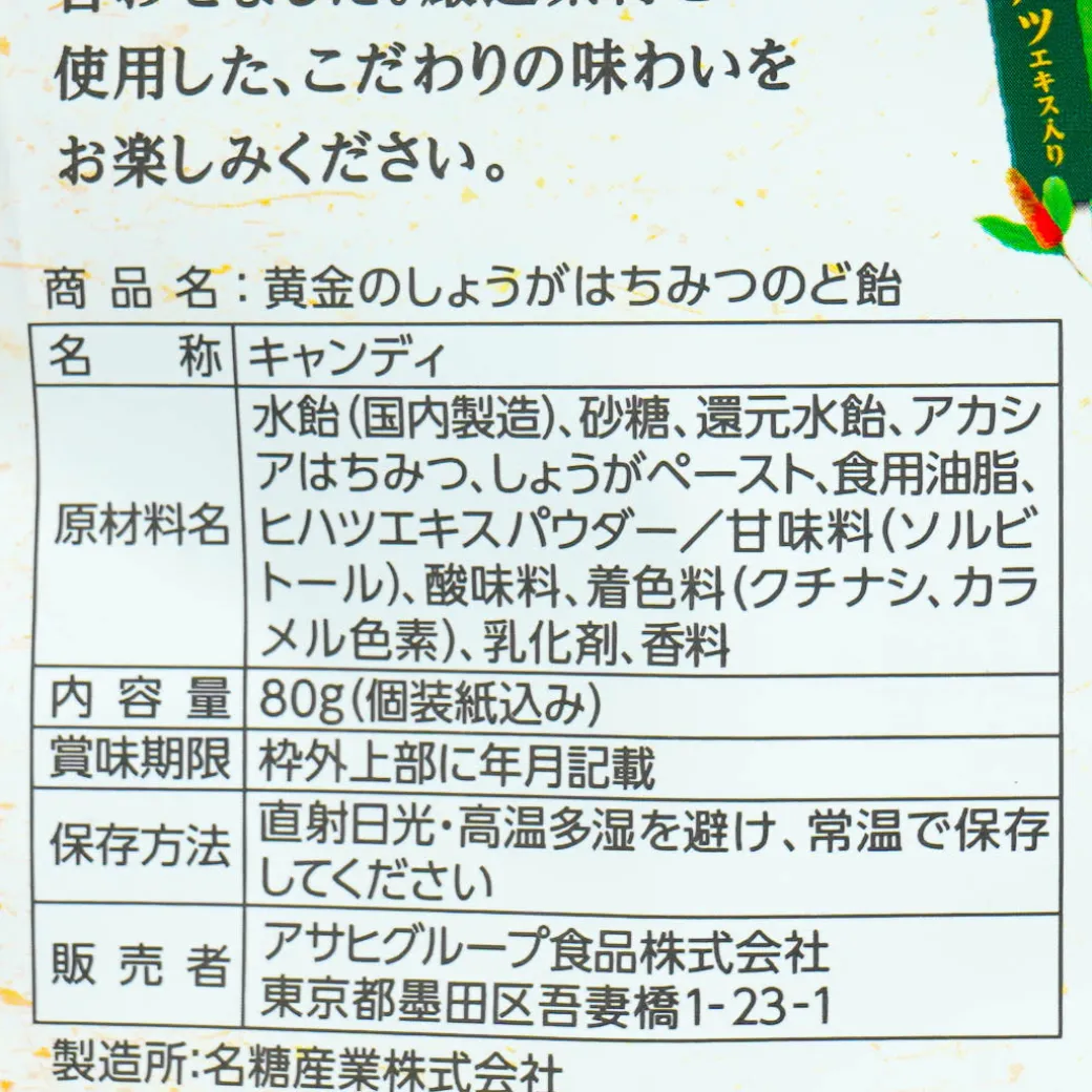 Experience the soothing blend of mild ginger and honey in this throat candy. It’s made with carefully selected golden ginger paste from Kochi Prefecture and acacia honey.
