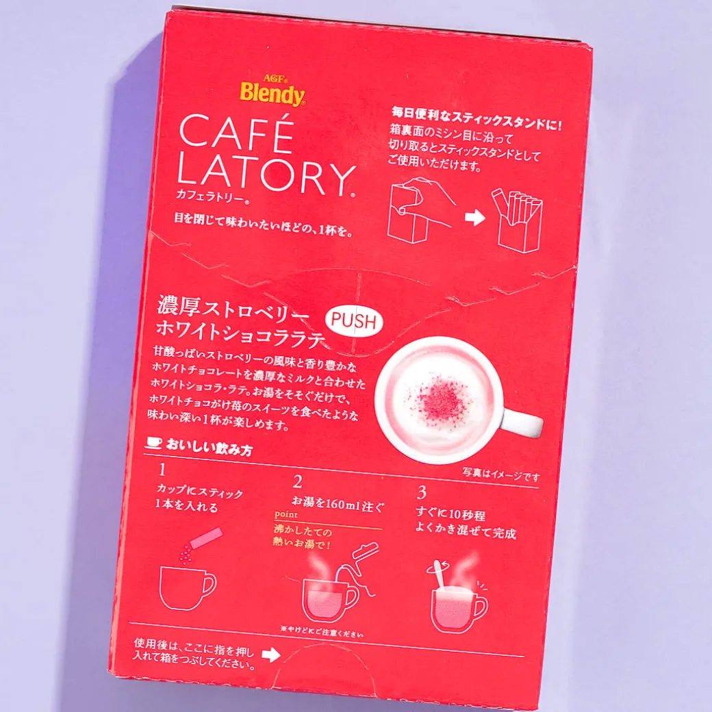 Enjoy a warm cup of latte that combines the sweet and sour strawberry flavor with the aromatic taste of white chocolate! Each stick makes a creamy and milky drink when mixed with hot water.