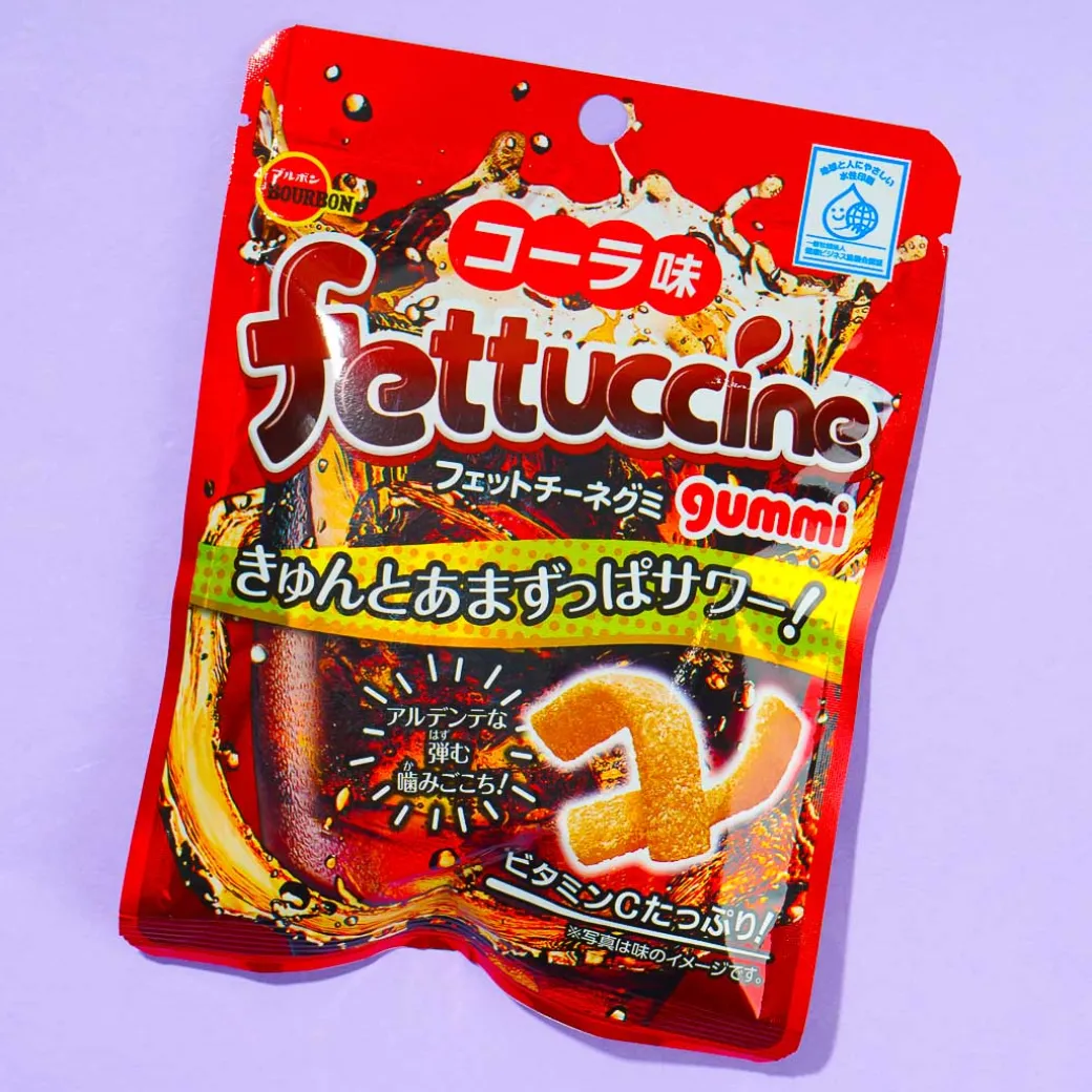 Enjoy snacking on this Italian pasta-inspired gummy candy! It’s shaped like a fettuccine noodle and even has a chewy al dente texture. The tangy cola flavor and sugar coating give this treat a sweet and sour taste.
