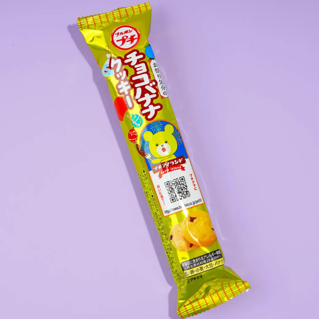 Enjoy this bite-sized snack everywhere you go! It’s a banana-flavored cookie with bittersweet chocolate chips.