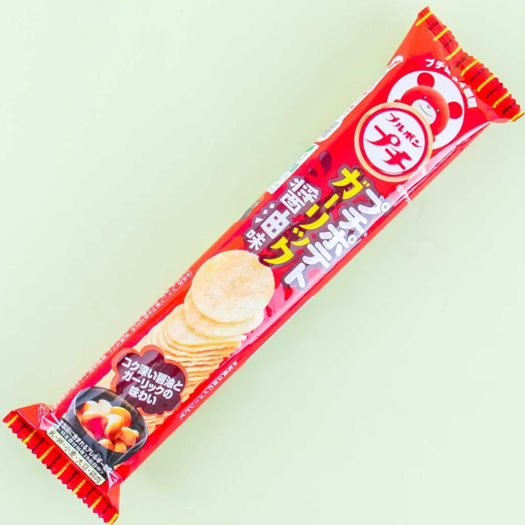 - A pack of garlic and soy sauce-flavored mini potato chips