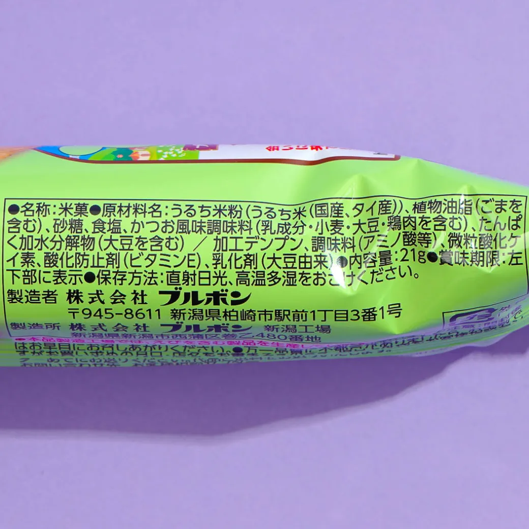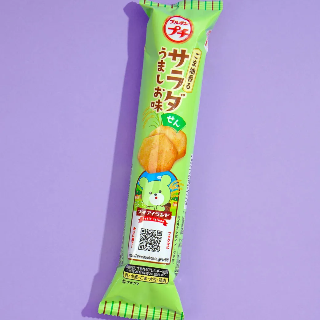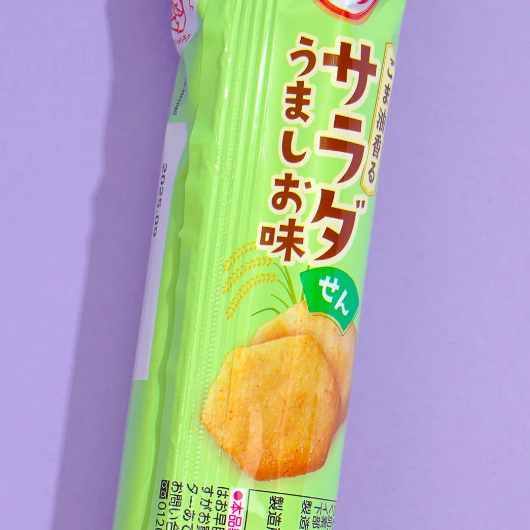 Enjoy this tasty senbei or rice cracker snack wherever, whenever! It features a light salad flavor, with added bonito stock for an extra savory taste.