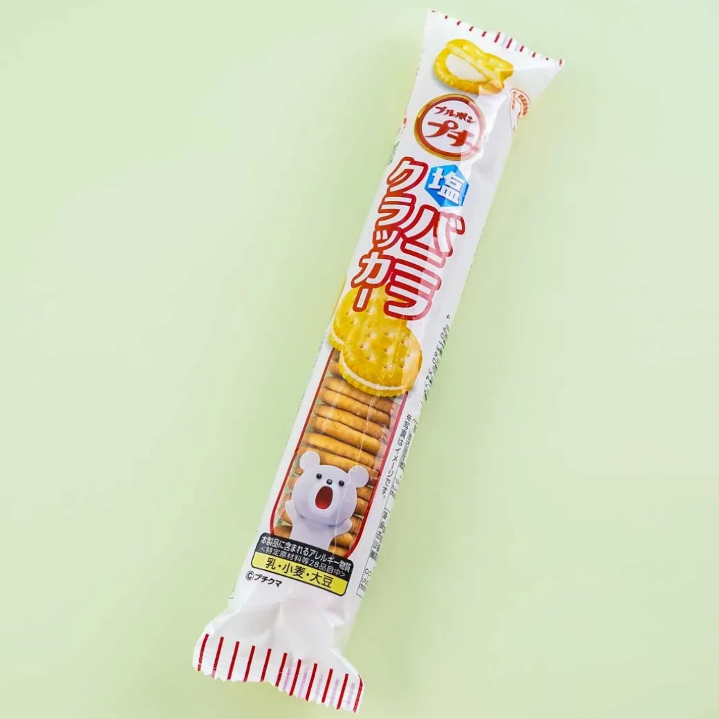 - A pack of mini salty sandwich crackers with sweet vanilla cream filling