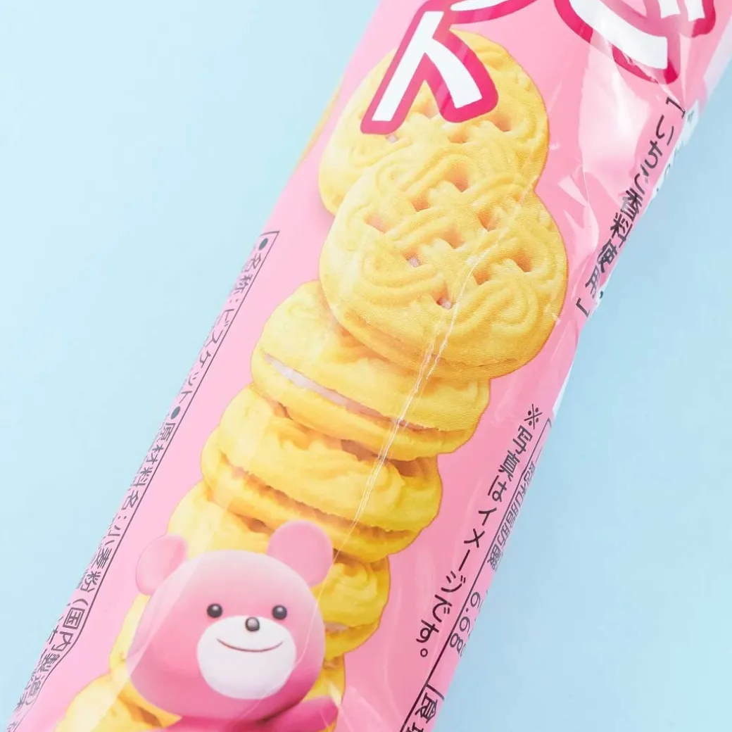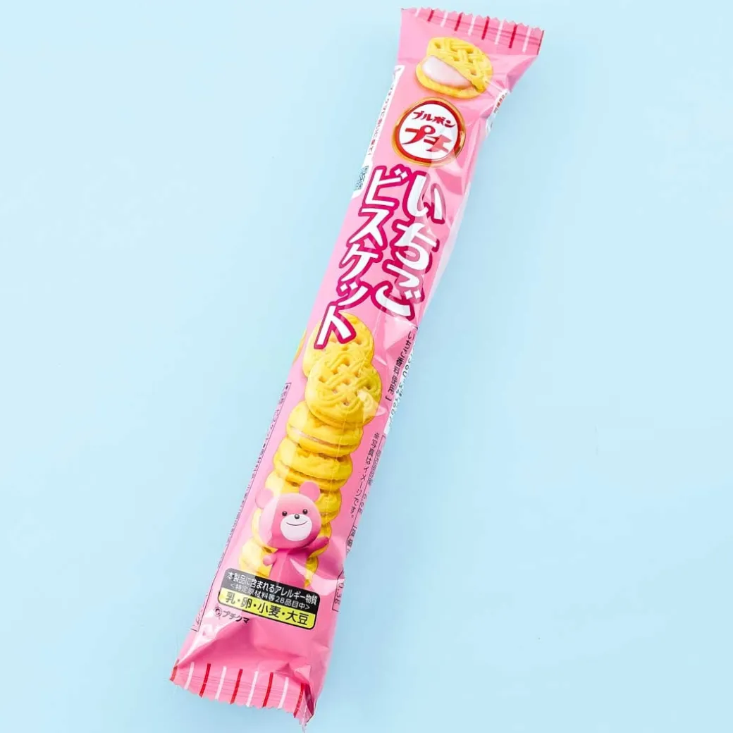 - A pack of delicious biscuits stuffed with strawberry-flavored cream
