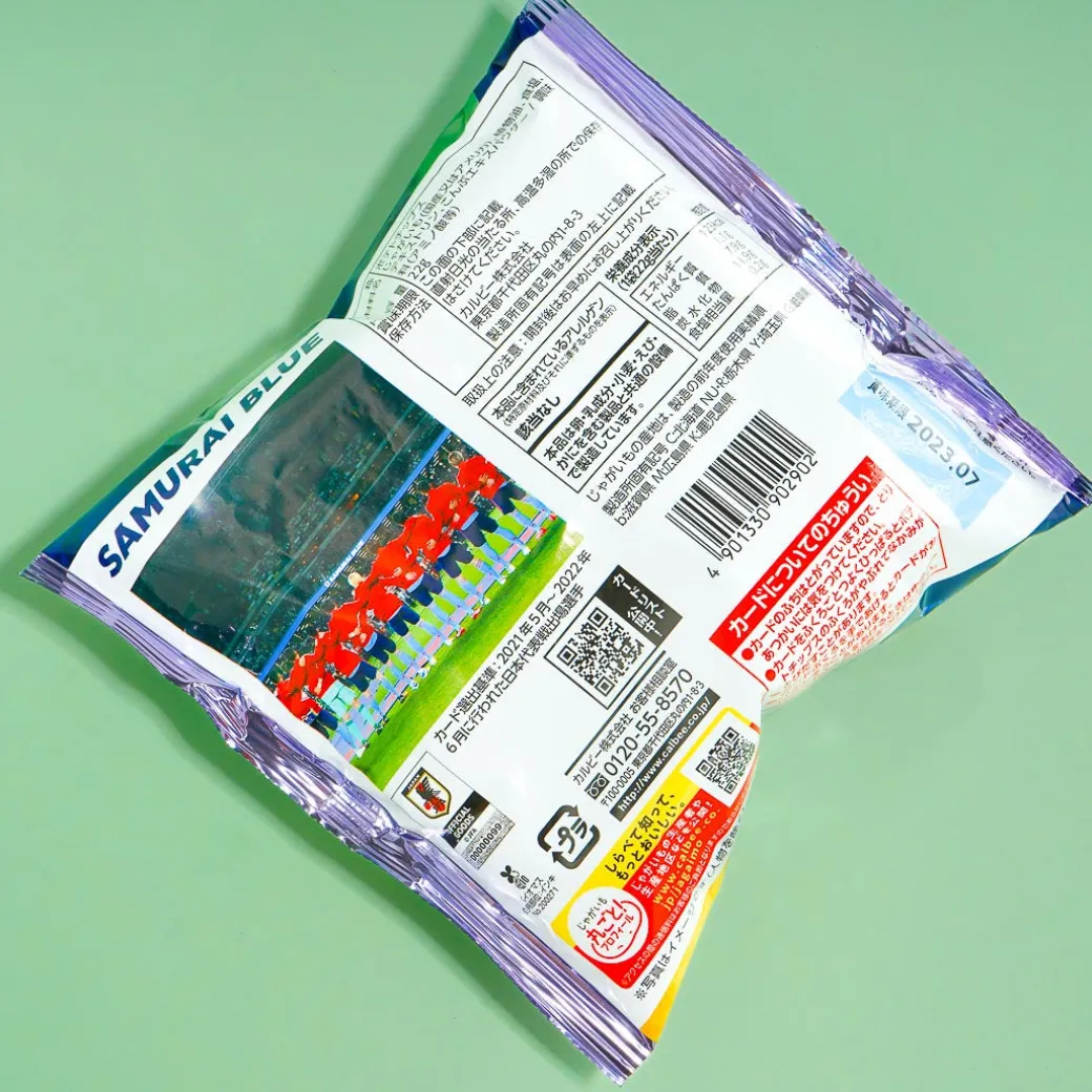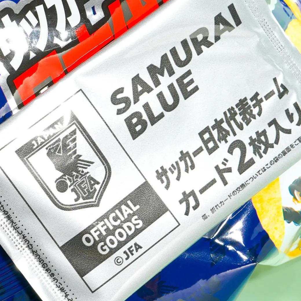 Snack on these lightly salted crunchy potato chips while you’re on a quick break! This special pack also comes with two free cards featuring random members of the Japan National Soccer Team 2022 line-up!