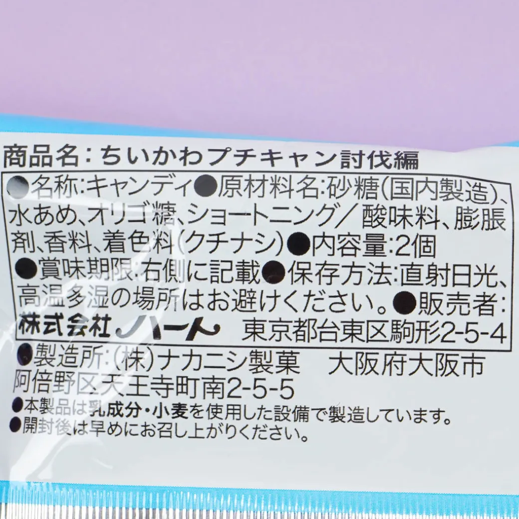 This super cute round tin can features illustrations of Chiikawa and friends raiding a little camp. It has two cider-flavored candies inside! Enjoy the treats and use the can to keep your trinkets!