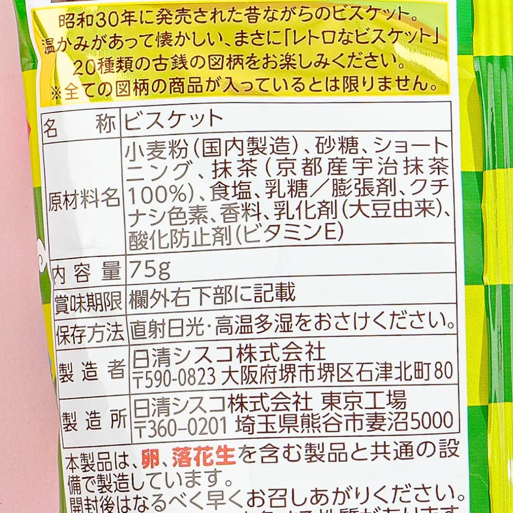 Pair these delicious coin-shaped cookies with your favorite drink! Each piece tastes like rich matcha or Japanese green tea. This pack of cookies features ukiyo-e (woodblock prints) of a geisha serving tea near Mt. Fuji! Add it to your snack bin.