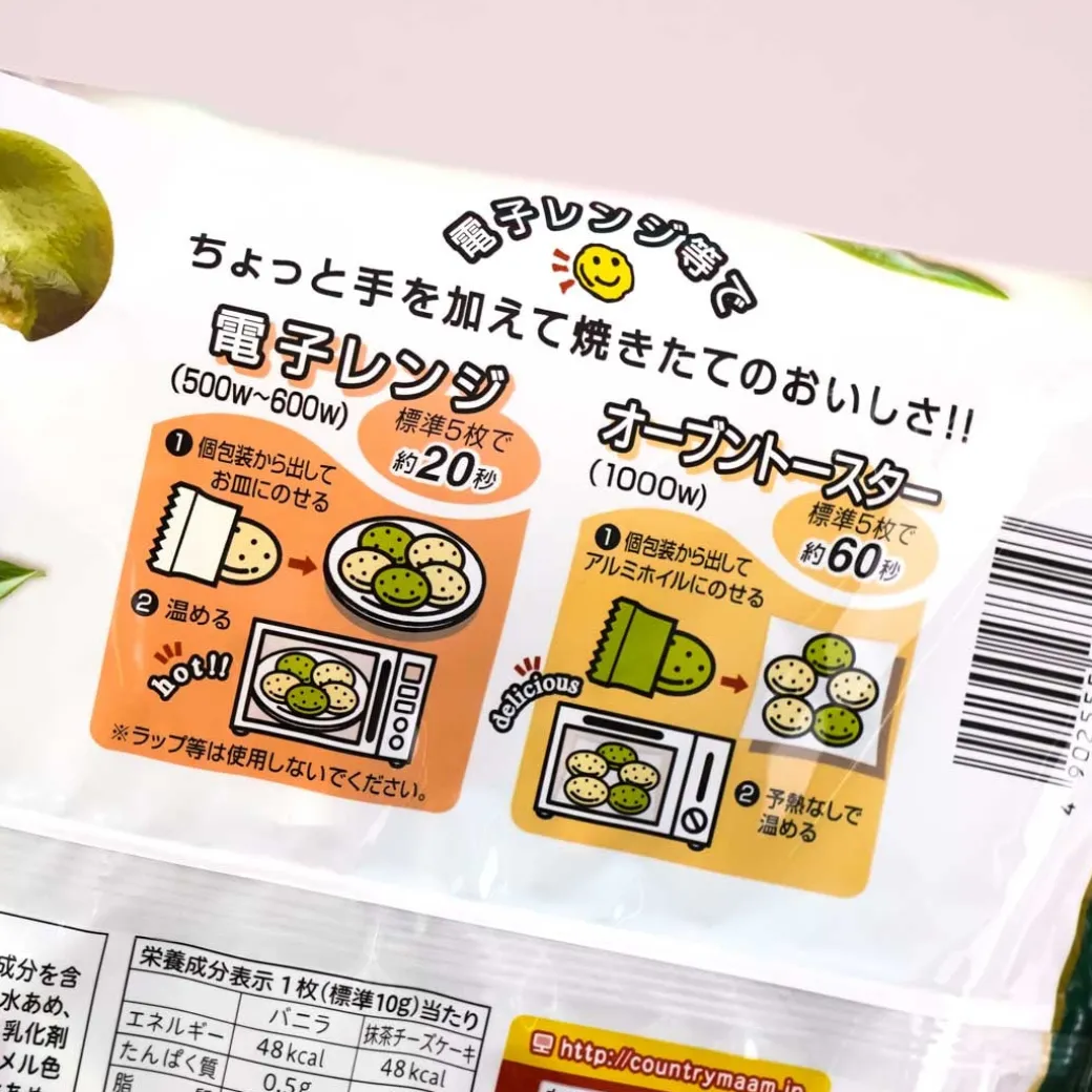 - A bag of individually wrapped vanilla and matcha cheesecake cookies