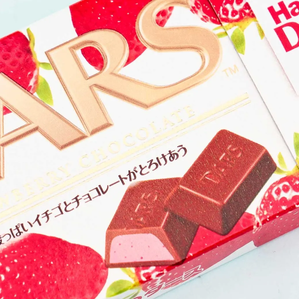 - DARS strawberry chocolate with pieces of strawberry chips, and chocolate