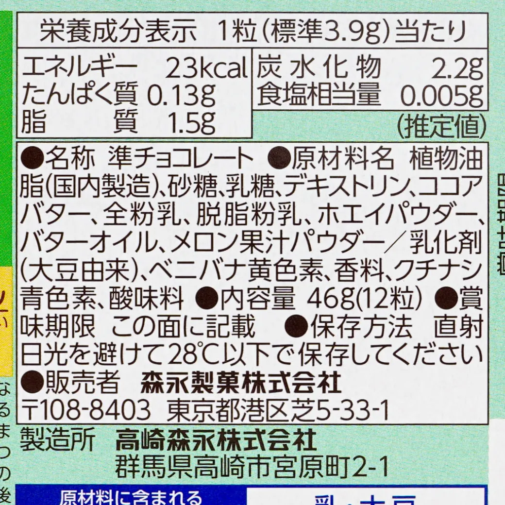 Satisfy your sweet cravings with this box of three-layered chocolates! Rich and creamy white chocolate is combined with the refreshing flavor of ripe melon.