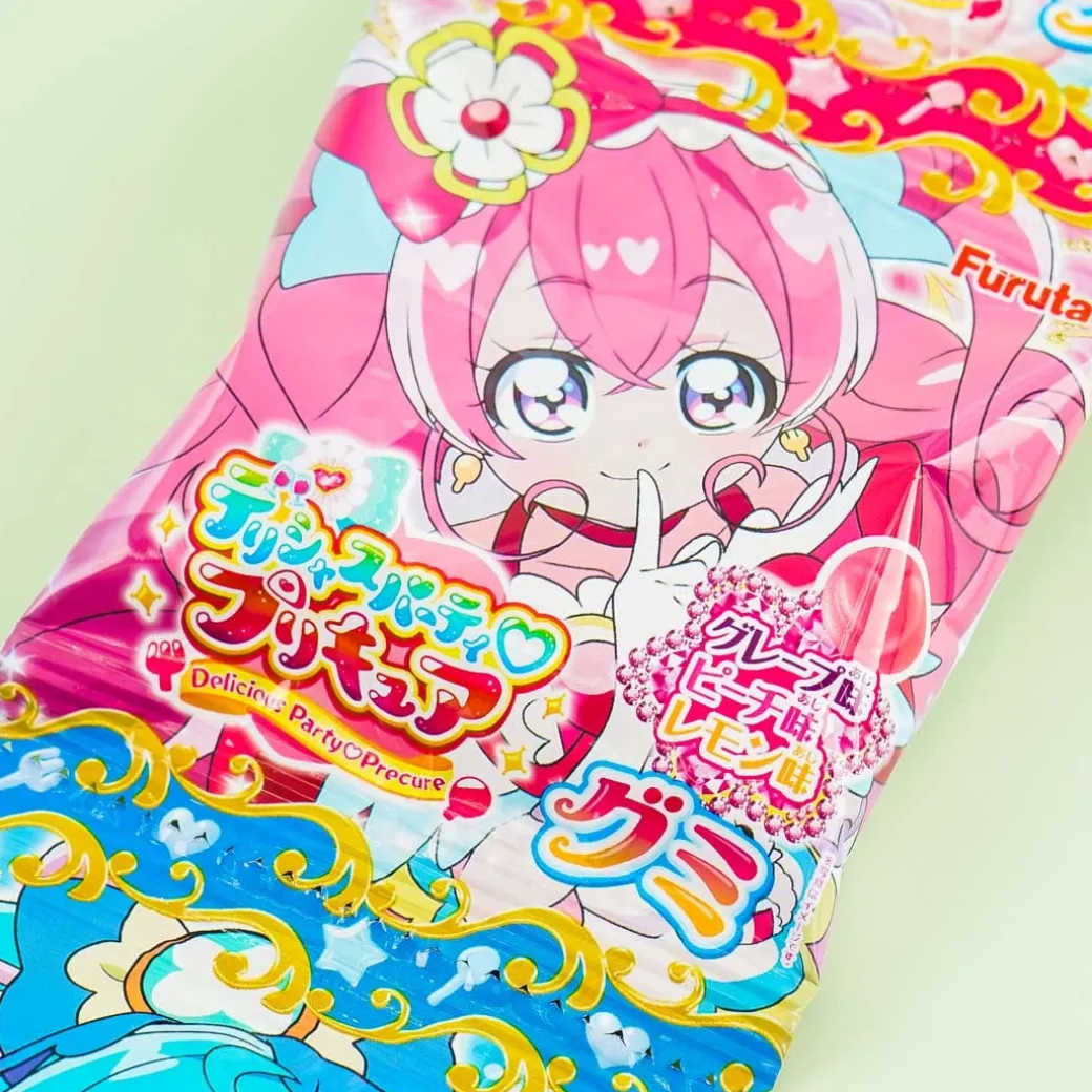 - A set of gummy candy packs showcasing characters from Delicious Party Pretty Cure