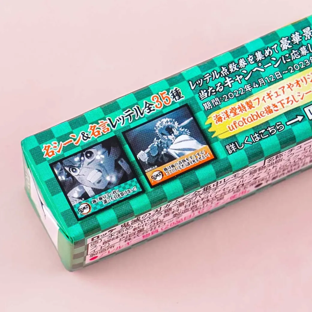 - A pack of lemon-flavored gum illustrated with a Demon Slayer character
