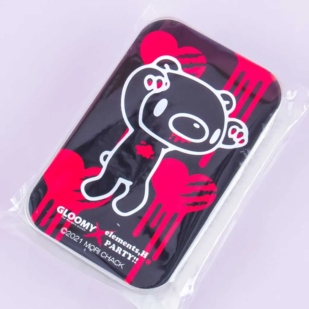 - A rectangle mint tin case featuring an illustration of a mad Gloomy Bear