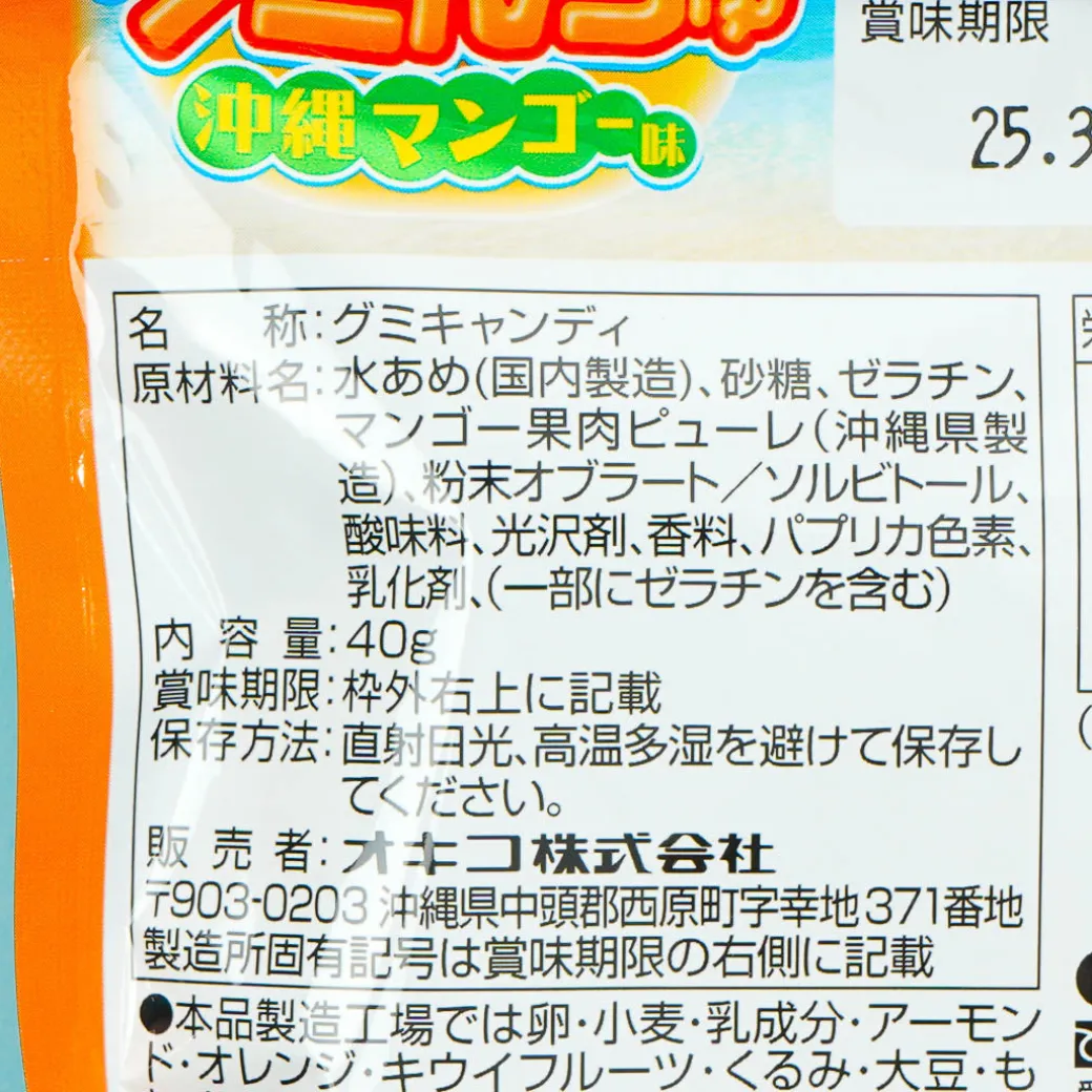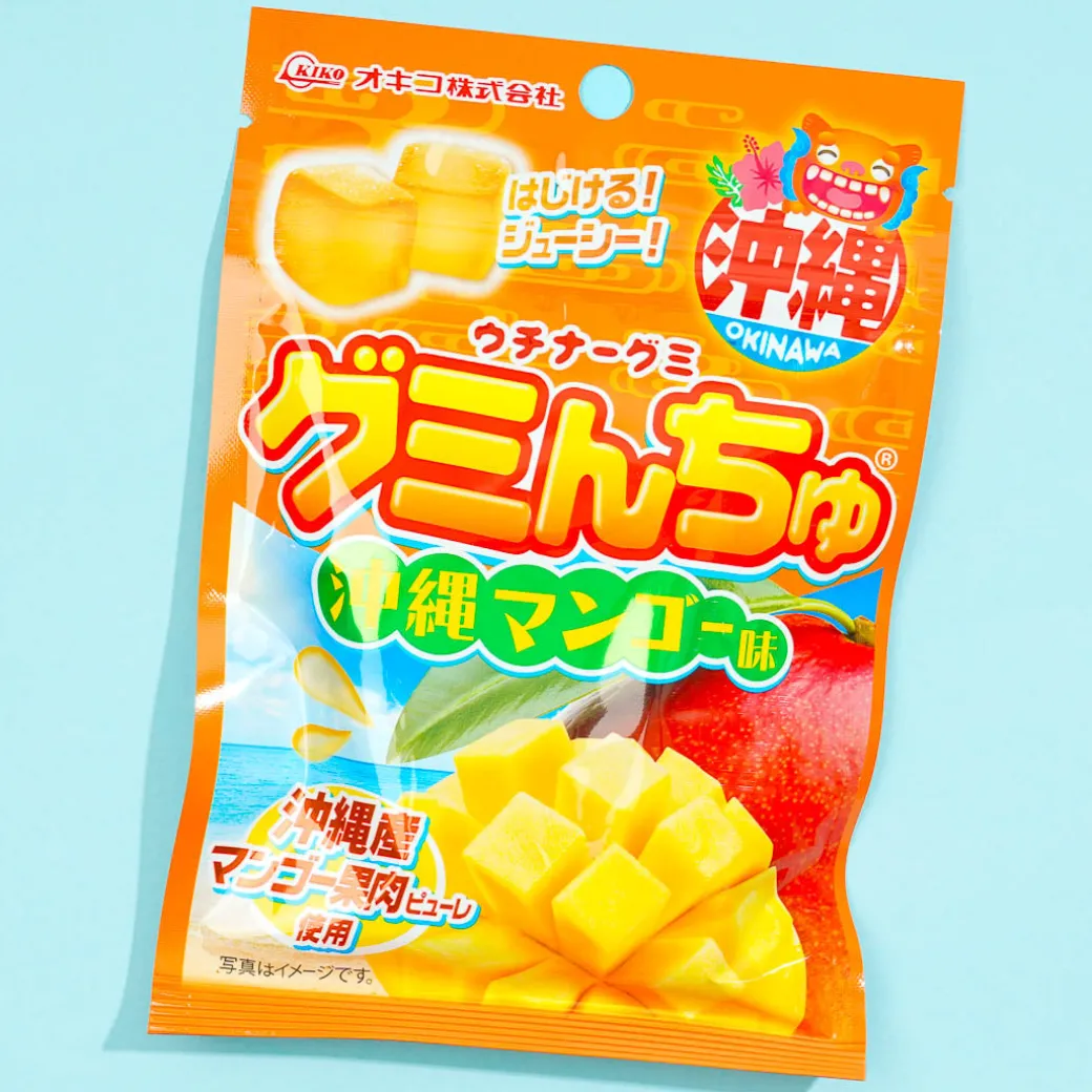 These cube-shaped gummy candies have a firm, chewy texture, and are made with Okinawa mango pulp puree! They’re perfect for sharing with friends!