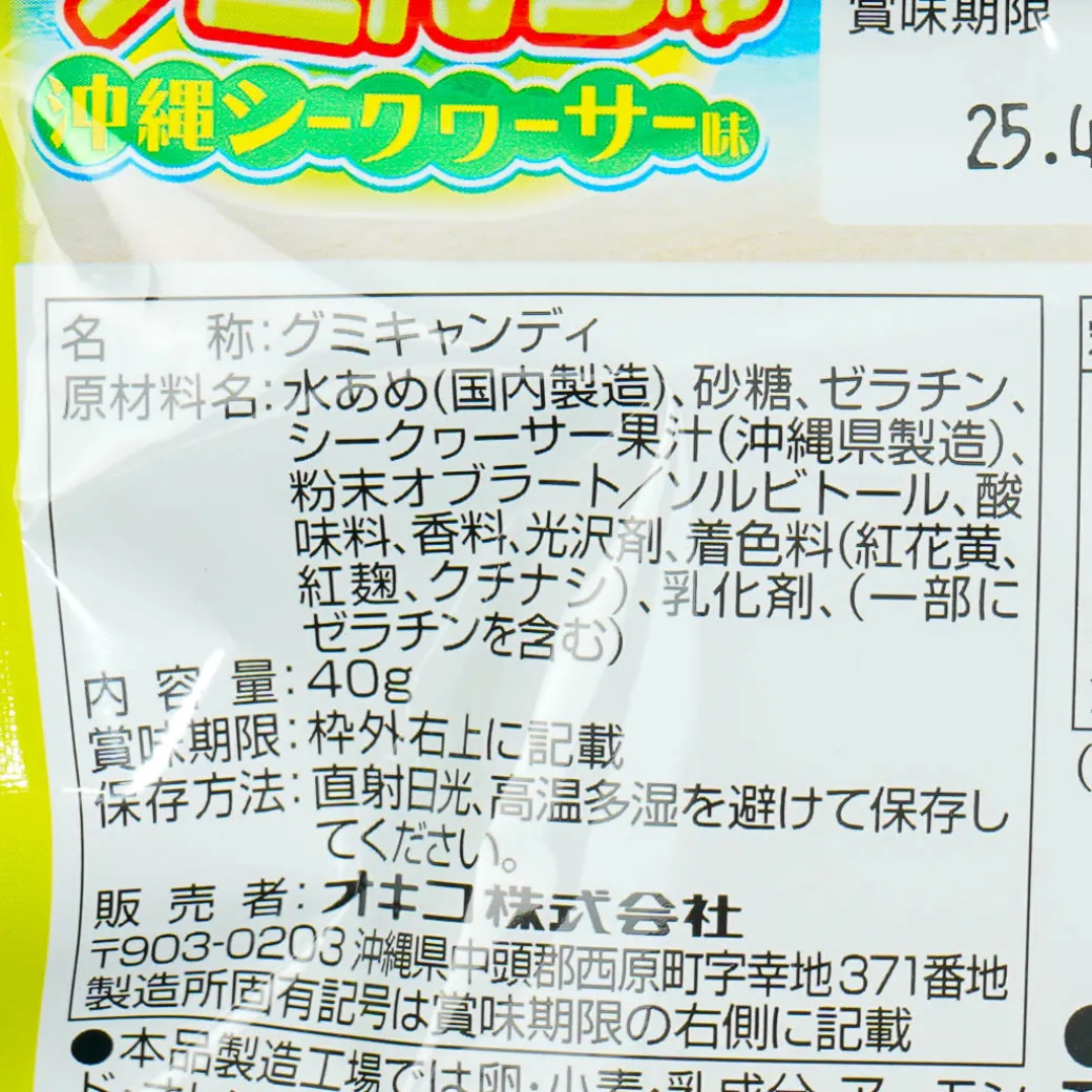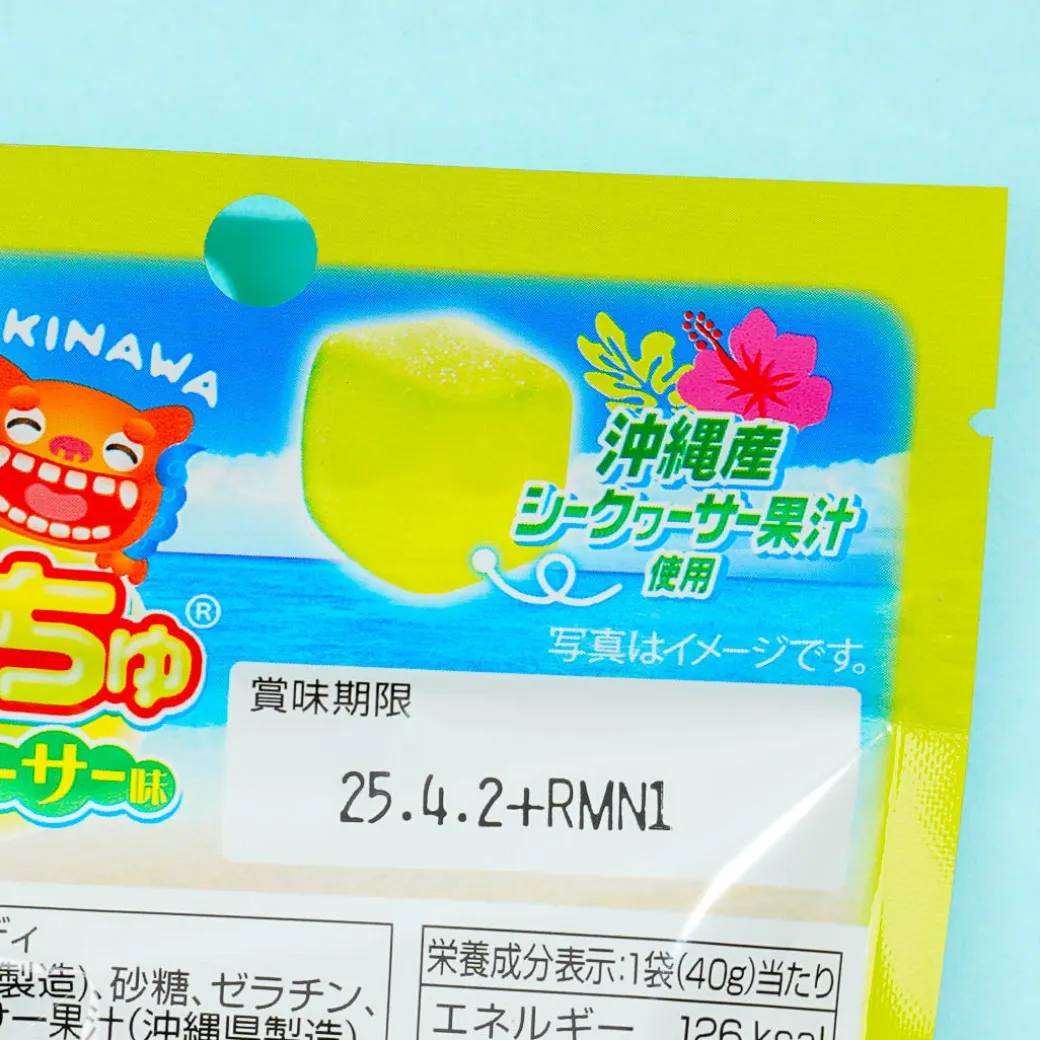 Enjoy the fresh aroma and sour taste of shikuwasa, an Okinawan specialty citrus fruit, in this juicy gummy candy! It’s made with shikuwasa juice and has a firm chewy texture.