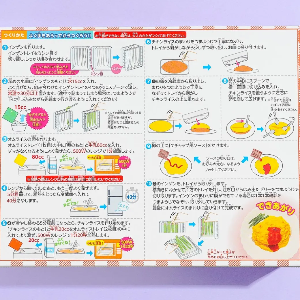 Make your own sweet omurice with this fun DIY candy kit! The candy omurice that’s made from this kit looks just like the real thing. All you have to do is follow the instructions at the back to make the omurice candy!