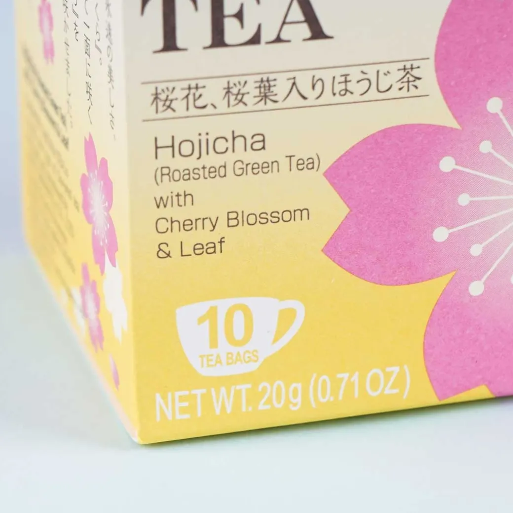 - A box of roasted green tea and sakura-flavored tea