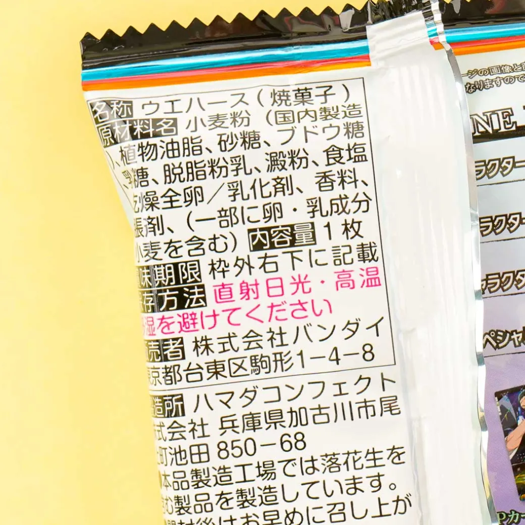 Enjoy snacking on this sweet vanilla cream wafer! It also comes with a free card featuring a character from the popular action animated series, “Jujutsu Kaisen.”