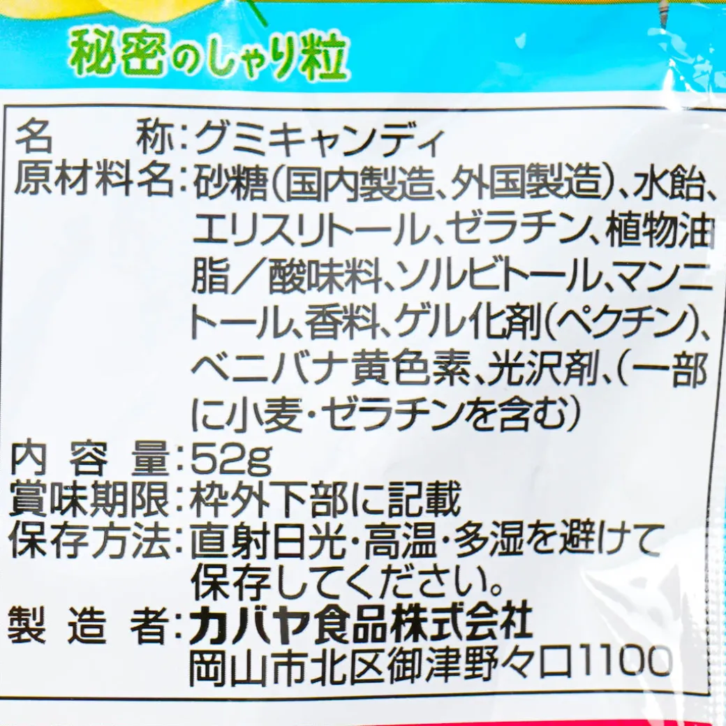 Enjoy this refreshing lemon-flavored gummy while outside! It looks smooth on the outside, but when you bite into it, you’ll feel the crispy rice grains! This treat comes in a resealable pouch so you can easily bring it with you.