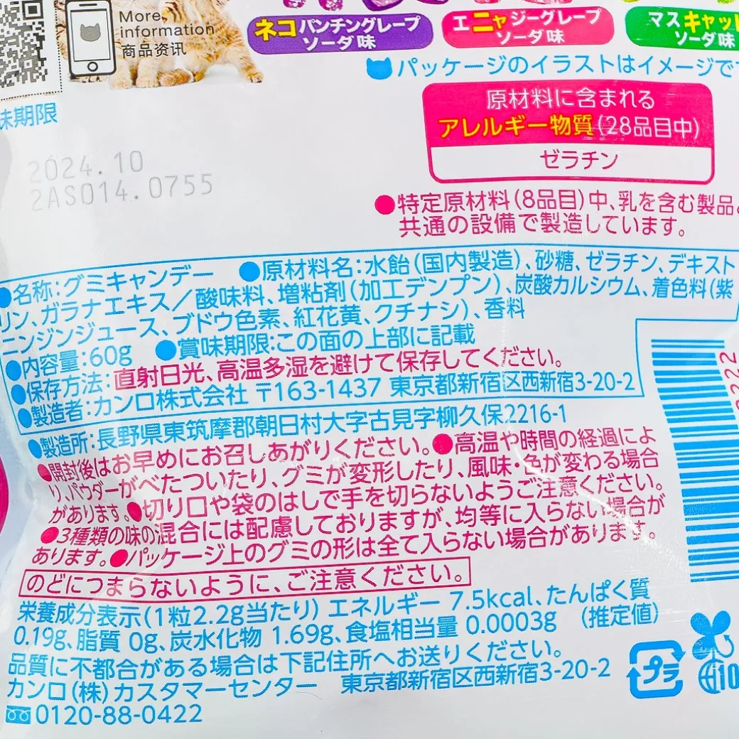- Features 3 flavors: grape soda, muscat soda, and neko punching grape soda