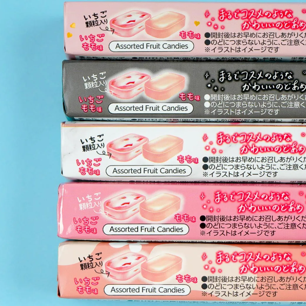 Soothe your throat while you look cute with these throat lozenges. These yummy throat candies come in a kawaii lipstick-shaped container! Each piece is flavored with peach and sprinkled with strawberry grains.
