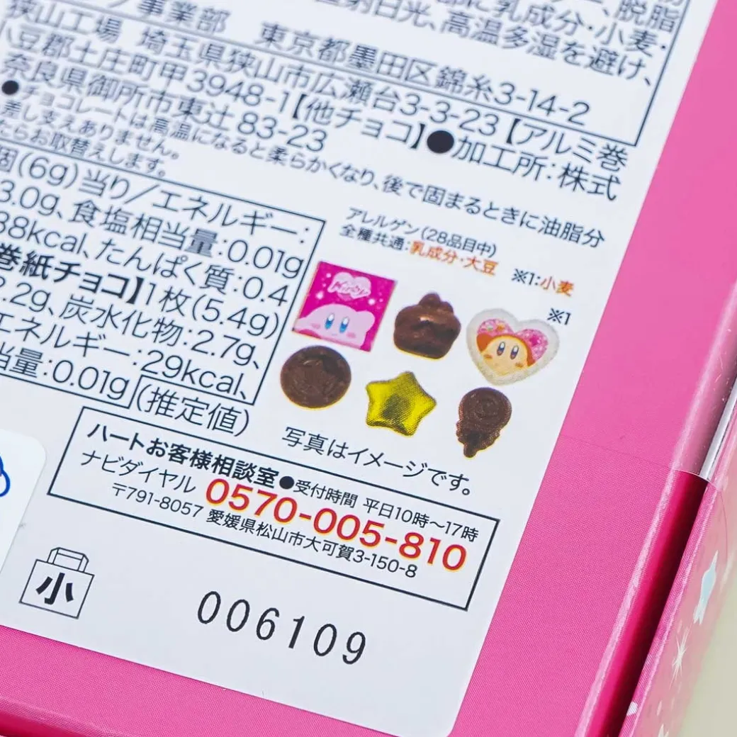 - A medium-sized box of assorted chocolate illustrated with Kirby characters