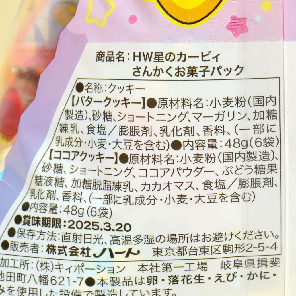 This triangle-shaped pack features prints of Kirby and Waddle Dee with a Halloween theme! It contains small pouches of both butter and cocoa cookies that are perfect for giving away for trick-or-treat!