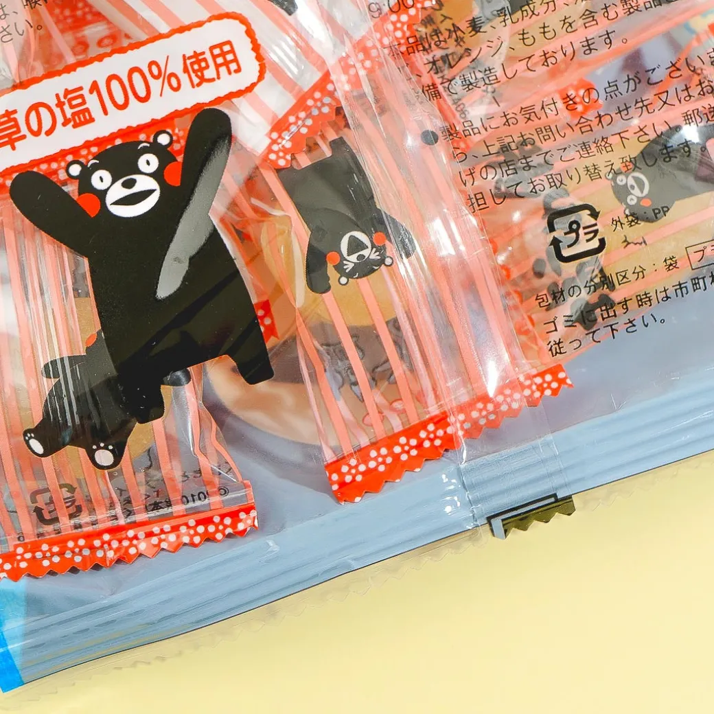 Enjoy the sweet and sour taste of Japanese plums with this pack of lightly salted hard candies. It showcases a print of Kumamon, the blushing bear of the Kumamoto Prefecture in Japan! Each individually wrapped piece is also illustrated with Kumamon. These candies are vegetarian and vegan friendly so everyone can enjoy them!