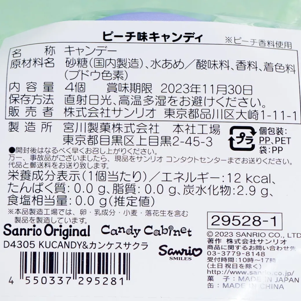 Store loose change and other small knickknacks inside this round-shaped tin! It’s decorated with illustrations of Kuromi surrounded by lovely sakura flowers! The case also comes with free peach-flavored sweets.