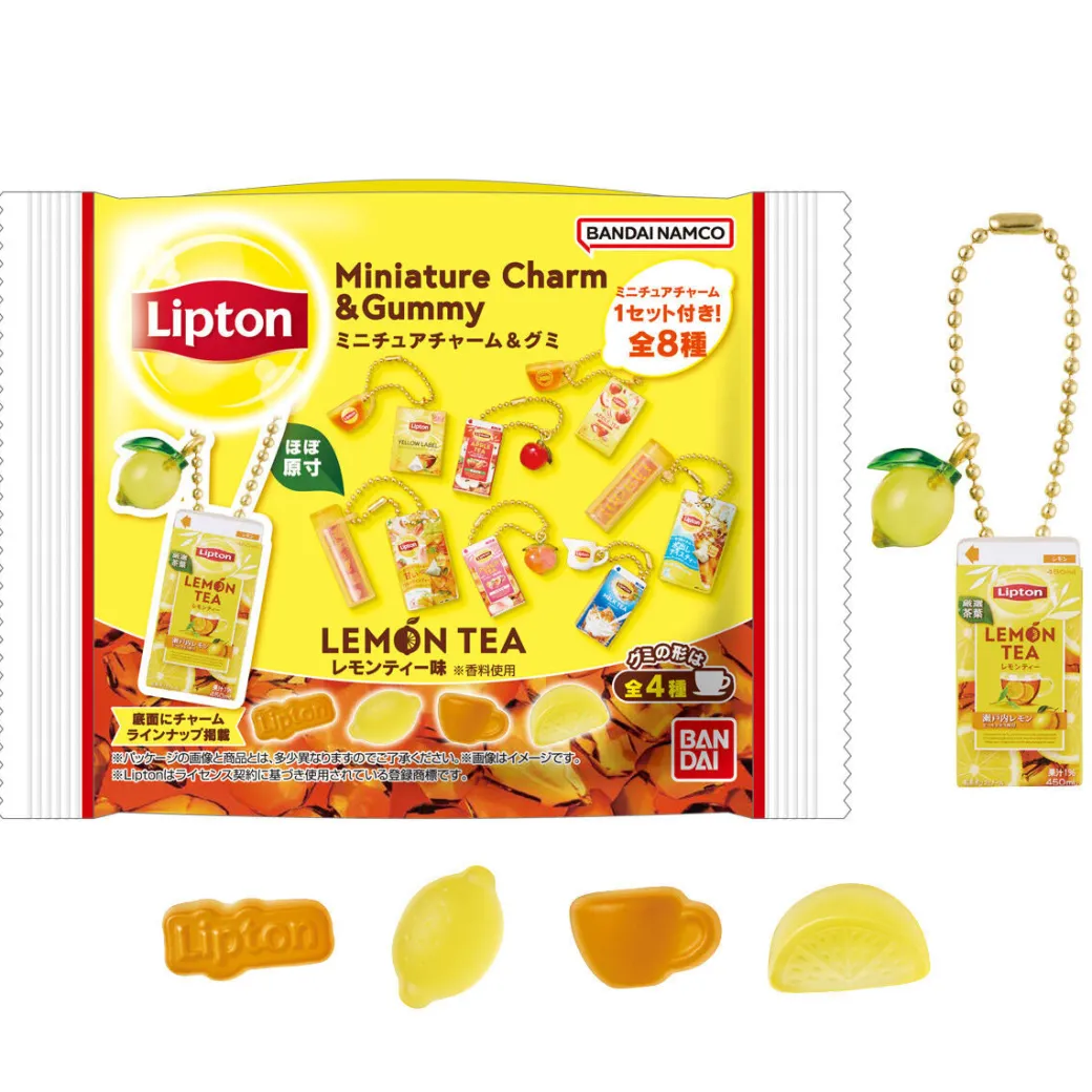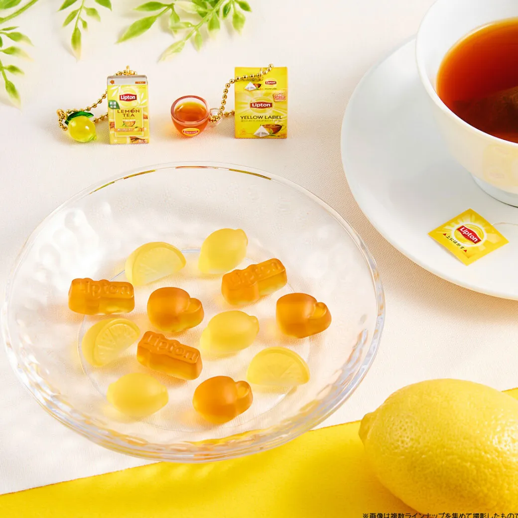 Enjoy lemon tea-flavored gummies and Lipton tea miniature charms in this fun pack! It includes a detailed mini tea carton or tea bag charm paired with a second charm like a fruit, a teacup, or a tumbler. The gummies are shaped like lemons and teacups for extra fun.