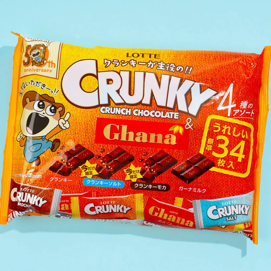 Hide this pack of chocolate in your candy cabinet for sugar emergencies. It has four different types of Crunky and Ghana chocolate for you to enjoy. The pack has bars of regular Crunk chocolate, Crunky mocha chocolate, Crunky salt chocolate, and Ghana milk chocolate.