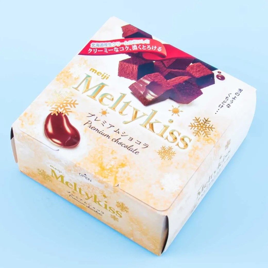 Meiji’s famous Meltykiss chocolate are cube shaped chocolates coated in cocoa powder and filled with tasty creamy chocolate, and they are not available during the hot summer months. They will literally melt in your mouth! This beautifully decorated box includes individually wrapped creamy chocolate cubes. This special edition features smooth taste of premium chocolate!