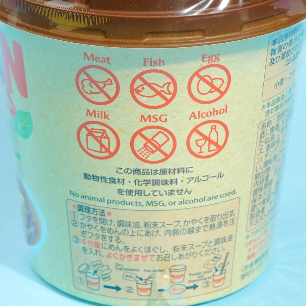 Fill yourself up with some nice Japanese noodle soup! This cup of instant noodles makes for a nice hot soup with the right amount of acidity and spice from pepper and chili oil. It’s a nice vegan treat that doesn’t use any animal products.