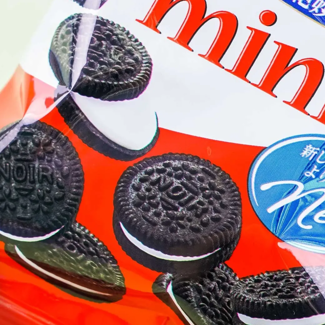 - A pack of black cocoa mini sandwich cookies with a sweet vanilla-flavored cream filling
