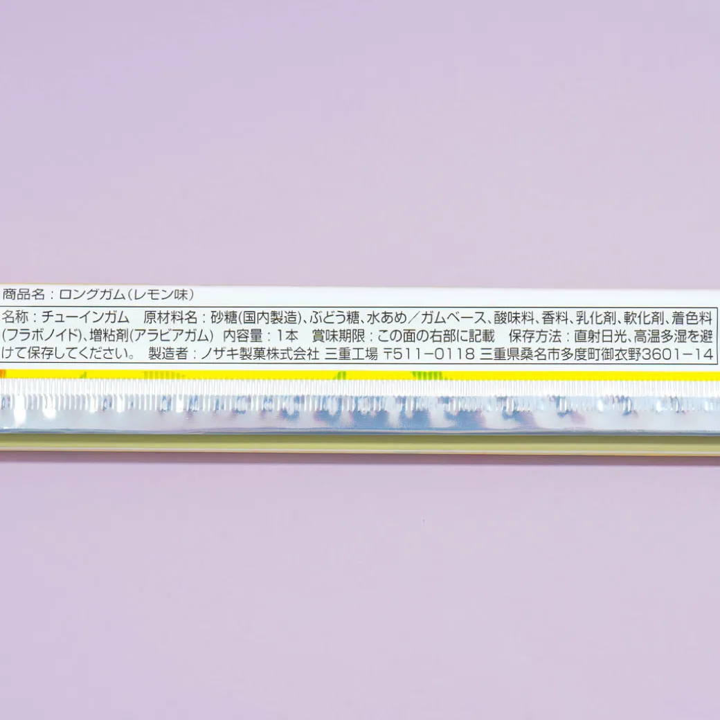 Have fun trying out this extra-long chewing gum! It’s made with refreshing lemon juice for that sweet and sour fruity flavor. You can also tear it up and share it with your friends!
